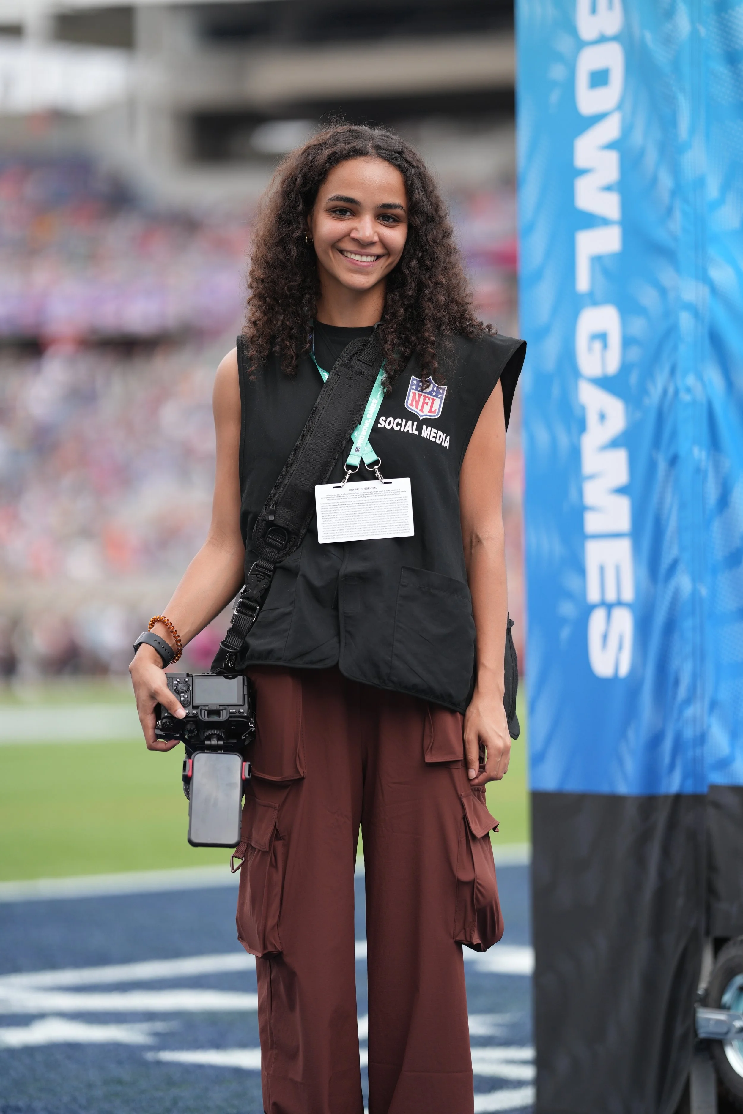 She is currently works full-time at Northwestern University as an Assistant Director of Creative Video and part-time with the NFL as a Live Content Correspondent.